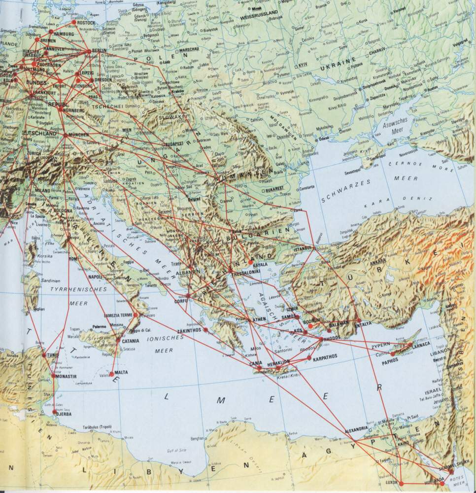 Flugreise vergingen wie im Flug bei guter Bordverpflegung, Videofilm und guter Bodensicht. Über Kairo sah man sogar die Pyramiden