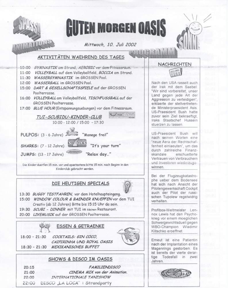 zu anderen Urlaubsländern). Eine wunderbare Atmosphäre, um sich gut zu erholen. In den tägliche Morgen-News zum Frühstück erfährt man, was wann wo geboten wird.